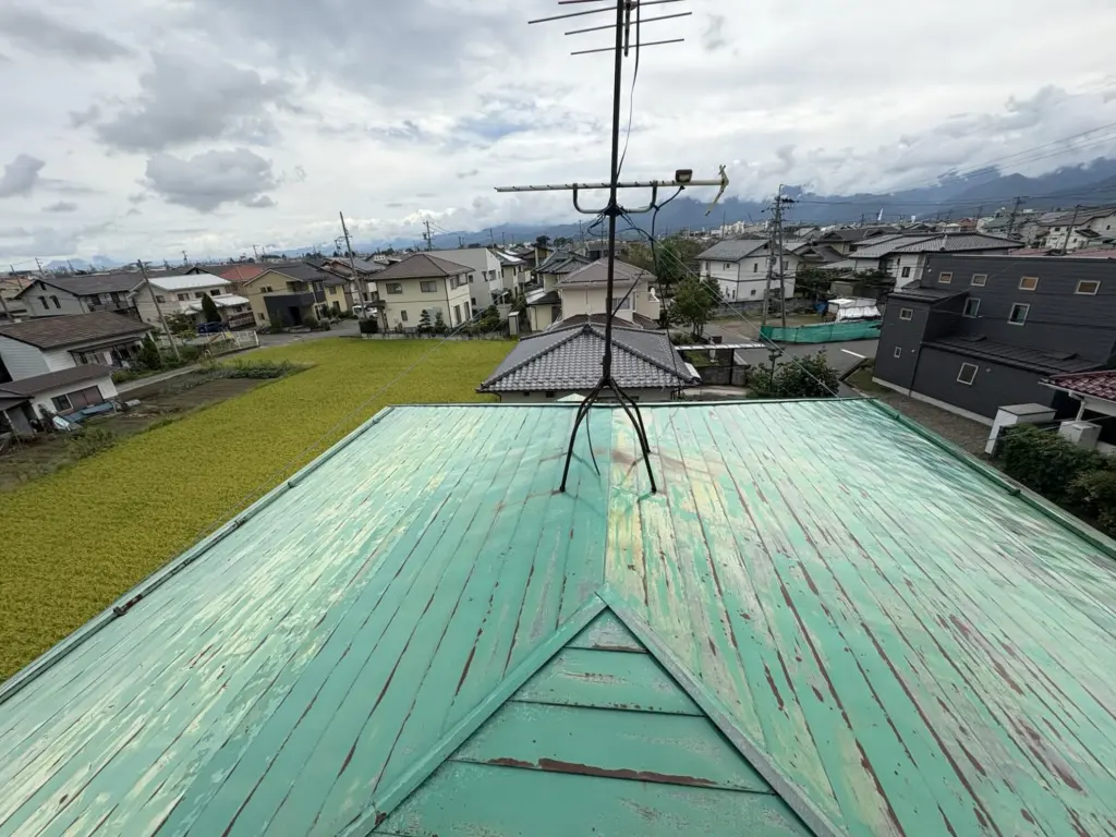 一部では金属の地肌が見え始めており、このままではサビが進行し、やがて屋根材自体の腐食や雨漏りにつながる危険も。