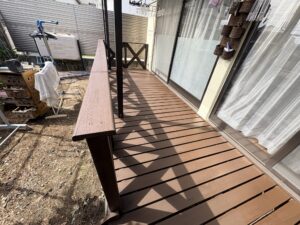 今回の上田市でのウッドデッキ塗装では、経年劣化による色あせ・ささくれをしっかり改善し、木の質感を生かした温かみのある仕上がりを実現しました。